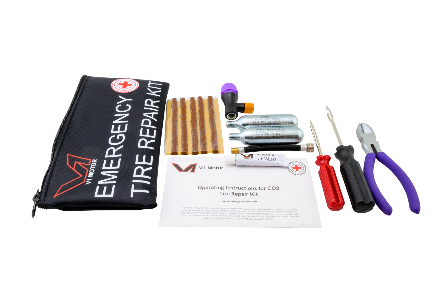V1 Motor CO2 Motorcycle, ATV Flat Compact Repair Kit Tubeless Emergency Tire Repair Kit