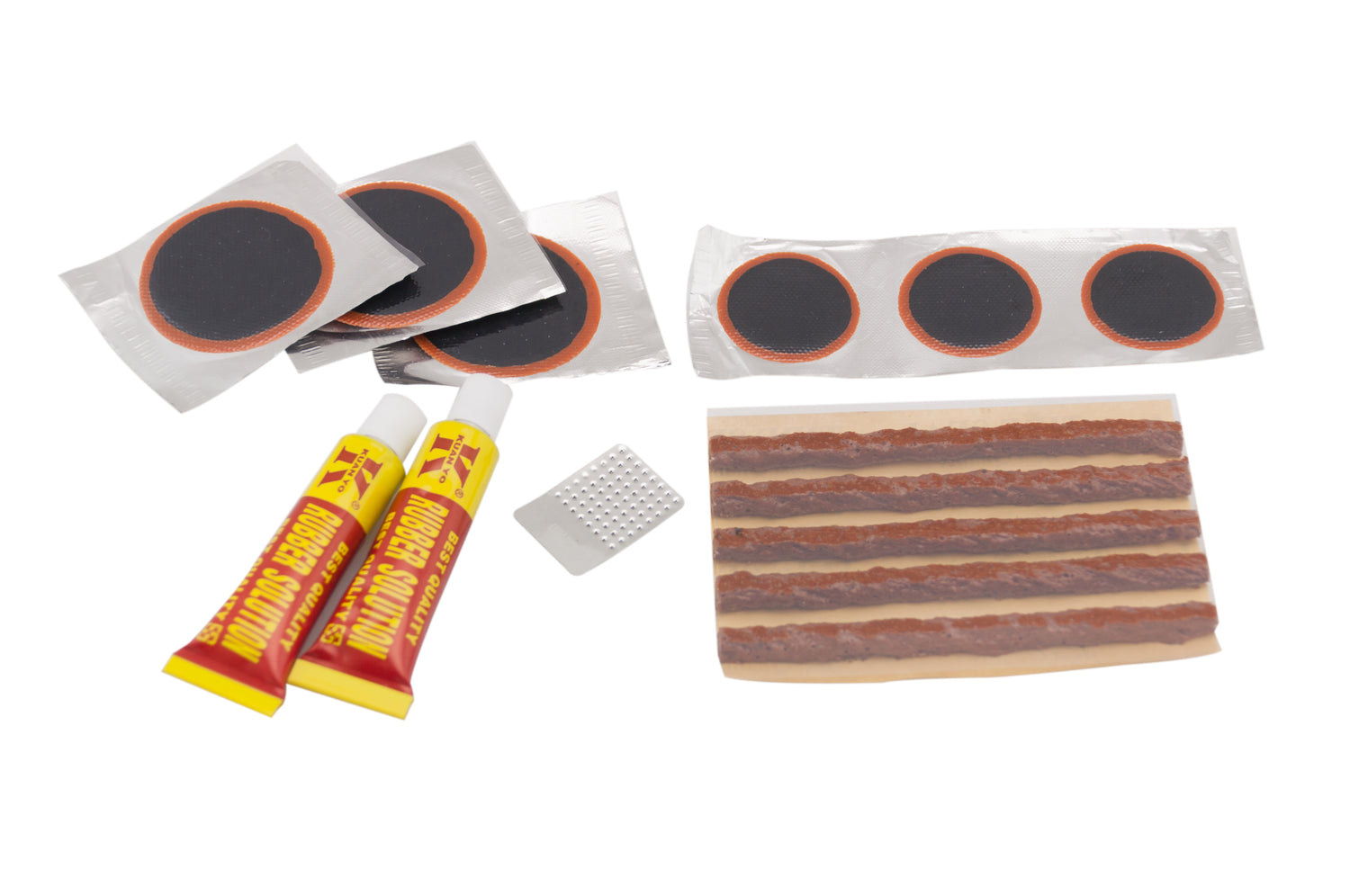 Had to use a tire repair kit on your ride to get back on the road? The Tire Repair Kit refill kit is just what you need to be prepared on another trip. Contains 5 string plugs, 3 small patches, 3 medium patches, 1 scruffer tool, and 2 tubes of rubber cement. Just put this refill kit into your TRK and enjoy the peace of mind while on your trips.